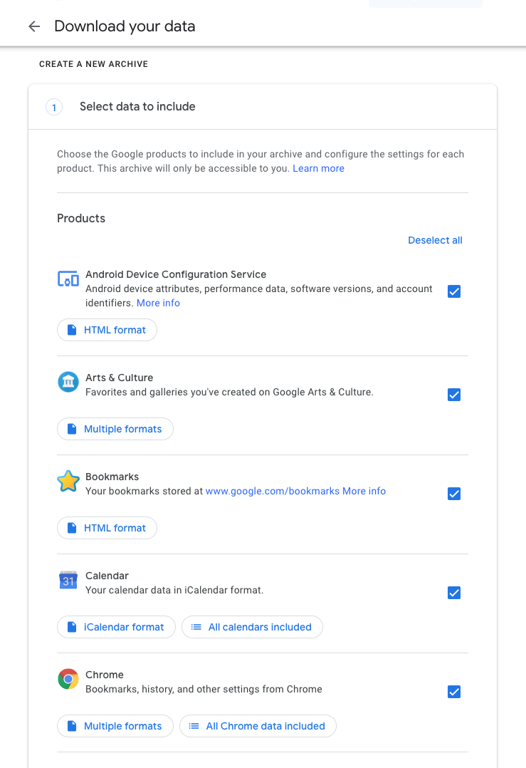 Both Google and Facebook, as well as various other companies, allow you to download the data they have stored on you.